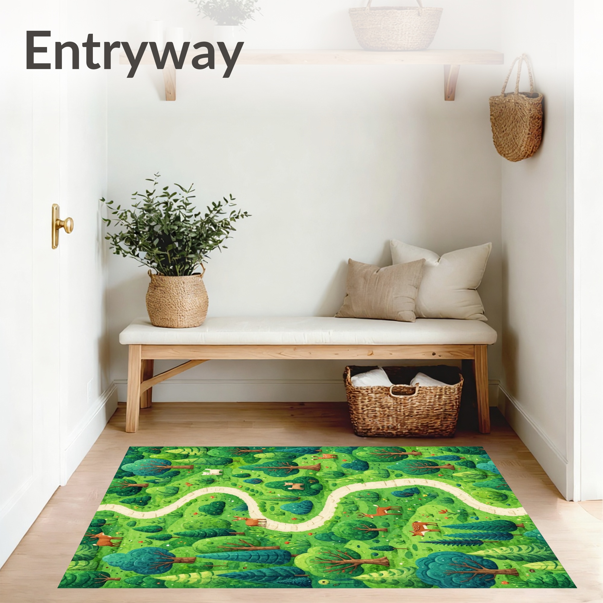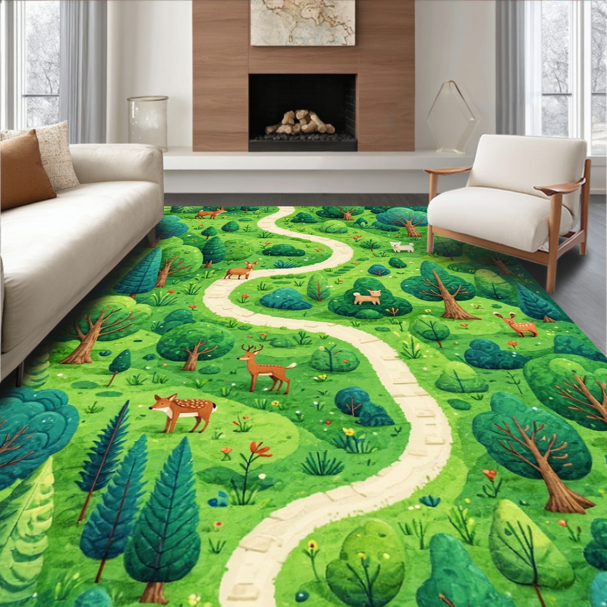 Whimsical Green Forest Path Rug
