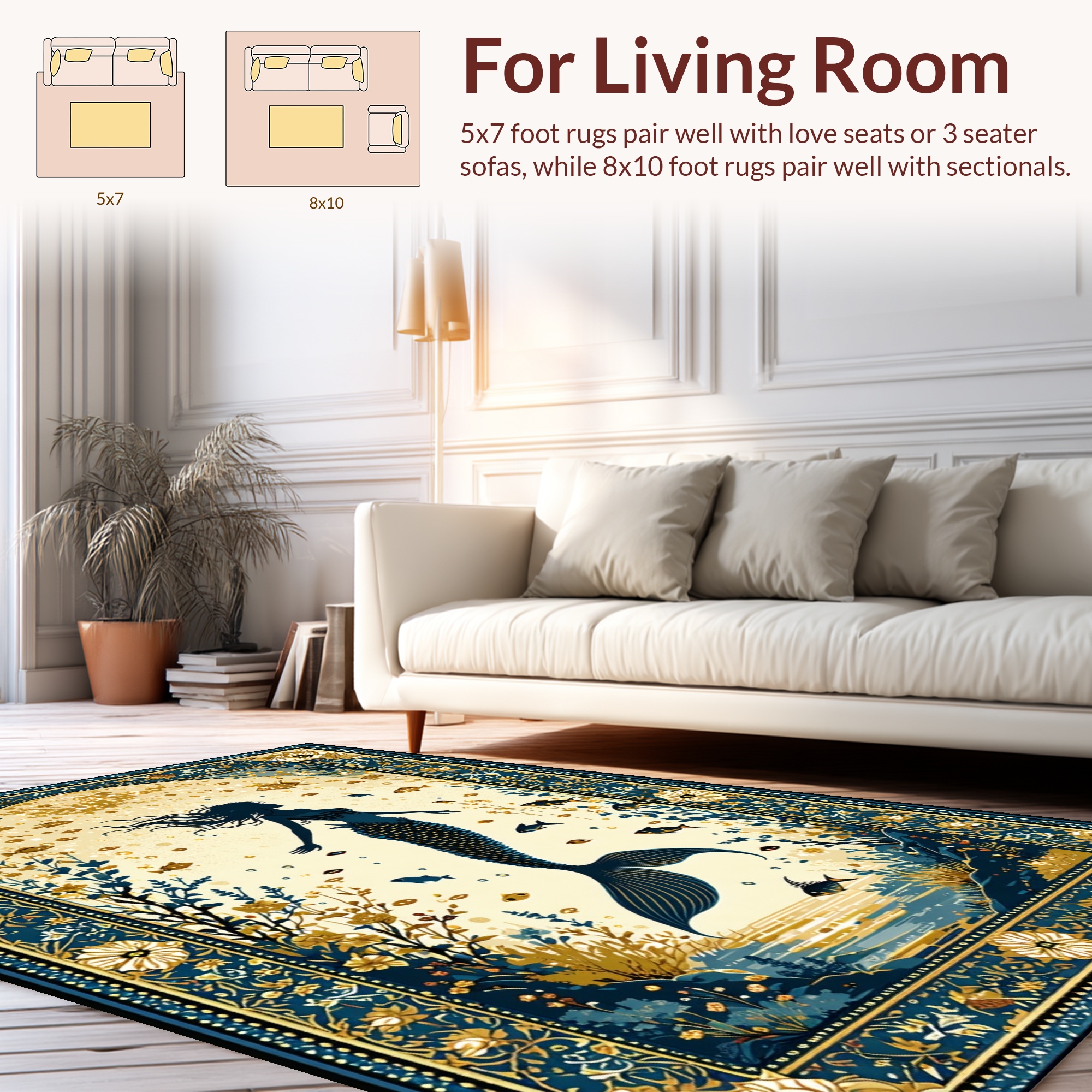 Whimsical Teal Gold Mermaid Rug